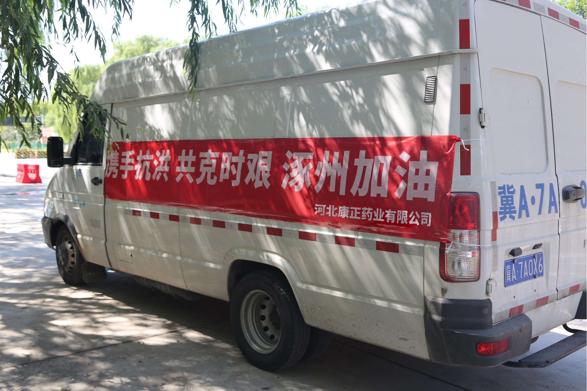 2023年8月初,河北涿州市遭受洪水灾害,在了解灾情发展势态后,河北康正药业有限公司董事长张立勇紧急协调工厂与物流,主动对接相关部门,利用公司生产消毒液产品的优势,紧急筹备了价值28万元的次氯酸消毒液,驰援受灾群众和一线救灾人员,助力涿州防汛救灾工作。